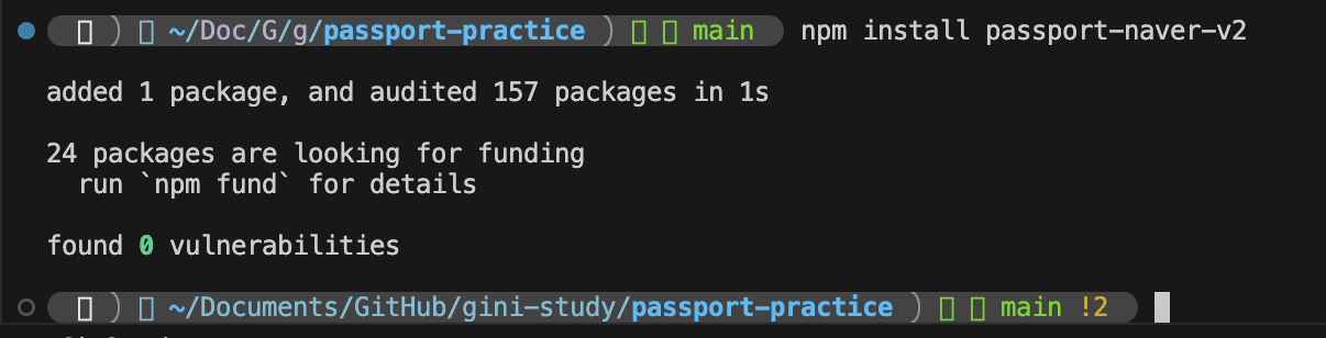 우선, 네이버에서 제공하고 있는 passport-naver가 있지만 해당 라이브러리는 개발 이후로 업데이트 되지 않았기 때문에 다른 블로그에서 직접 개발하신 v2 모듈을 사용했다.