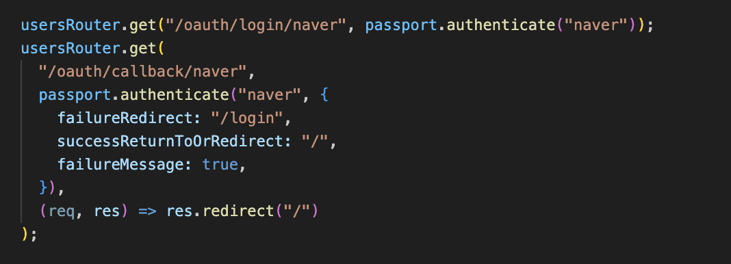 나는 router 파일에서 경로들을 관리하기 때문에 app 대신 해당 파일에서 사용하는 변수인 usersRouter를 사용했다.